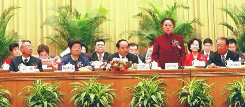 图为:出席二十二届国际科学与和平周开幕式的国家领导人及领导,其中有:全国政协原副主席 ·阿不都热西提(中间)、全国人大原副委员长 顾秀莲(左二)、全国人大原副委员长 何鲁丽(右二)、全国政协原副主席 赵南起(右一)、原全国人大常委、国际科学与和平周中国组委会主任 高潮(左一)、国际科学与和平周中国组委会副主任 詹松林院士(二排中间)