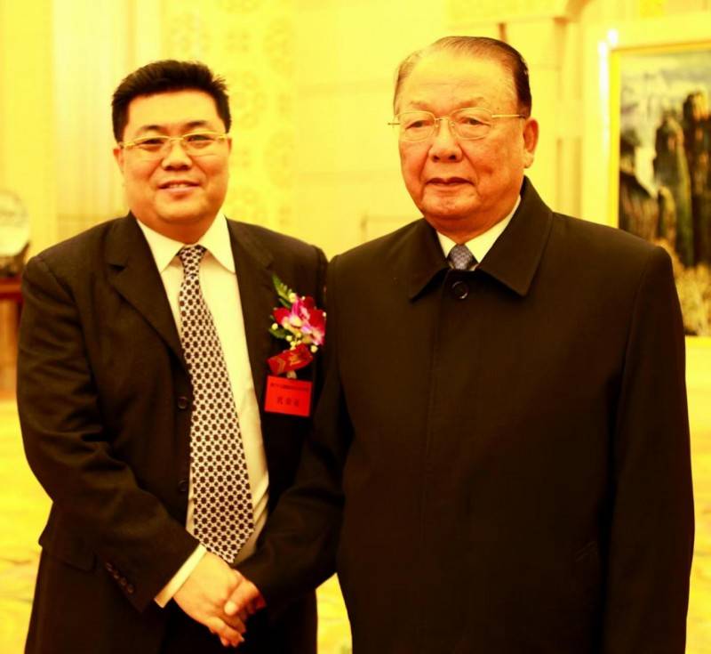 图为:故宫博物院原书记谭斌与中国优秀经济人物、著名收藏家 詹松林院士会面